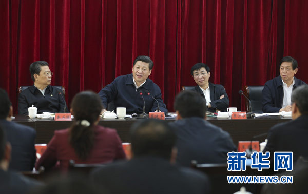 3月17日至18日,中共中央總書記、國家主席、中央軍委主席習(xí)近平在河南省蘭考縣調(diào)研指導(dǎo)黨的群眾路線教育實踐活動。這是3月18日,習(xí)近平聽取蘭考縣教育實踐活動情況匯報,并發(fā)表重要講話。(新華社記者 丁林 攝)