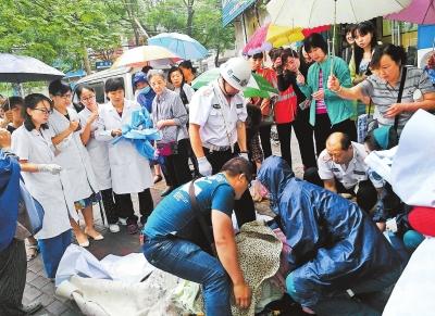 “快!找個衣服給孩子蓋住?!辈恢l喊了一聲。由于下雨天冷,光溜溜的小家伙凍得渾身發(fā)紫。話音剛落,沿街門店的商戶楊女士健步如飛,回到店里把自家孩子的毛毯拿過來,熱心市民有的還把衣服脫掉……毛巾、毛毯、衣服從人縫里送進來,一層又一層地裹住嬰兒。當(dāng)120急救車趕到現(xiàn)場,眾人把產(chǎn)婦抬上了救護車,所有人長長地出了口氣。